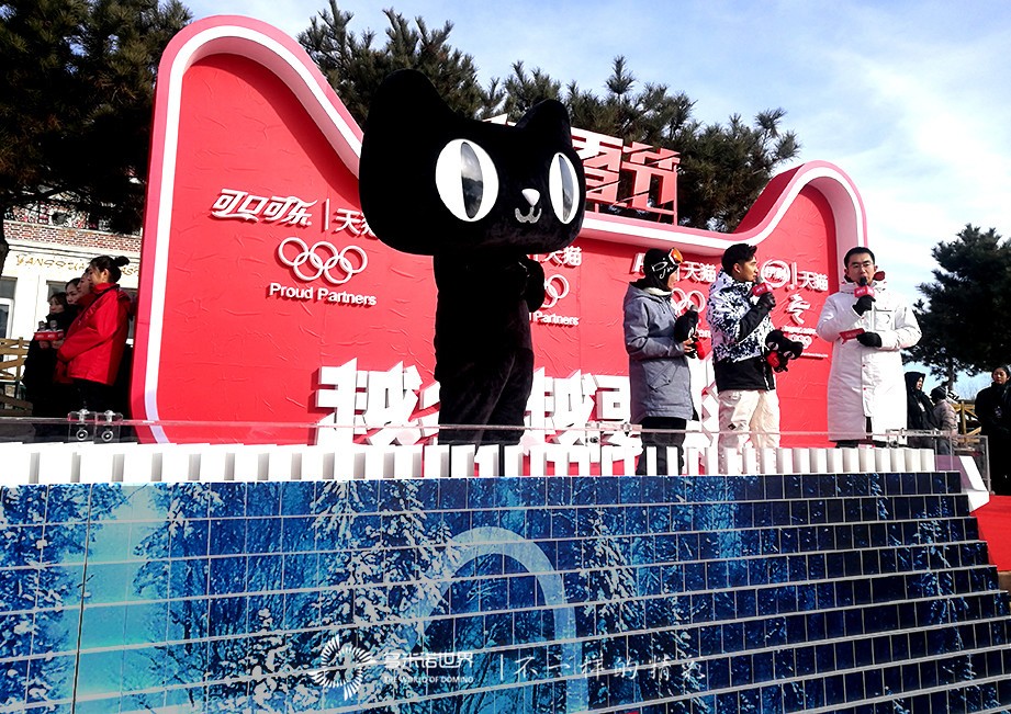 2018年1月6日,天猫冰雪节在北京南山滑雪场正式启动,强势引爆冬季大狂欢;跳水王子田亮携手短道速滑冠军李坚柔也重磅出席,与天猫一起见证全民健身时代。主办方特别邀请多米诺世界团队,将多米诺启动仪式设置在活动现场。